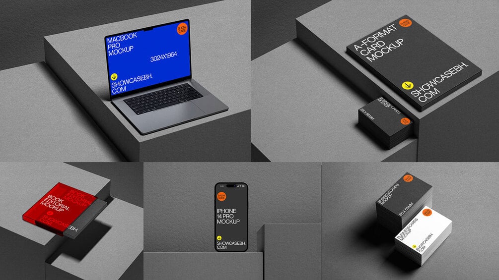 Showcase Mockups help designers to create a strong visual presence. PSD files with smart object layer, making it easy for you to make mockups in seconds.