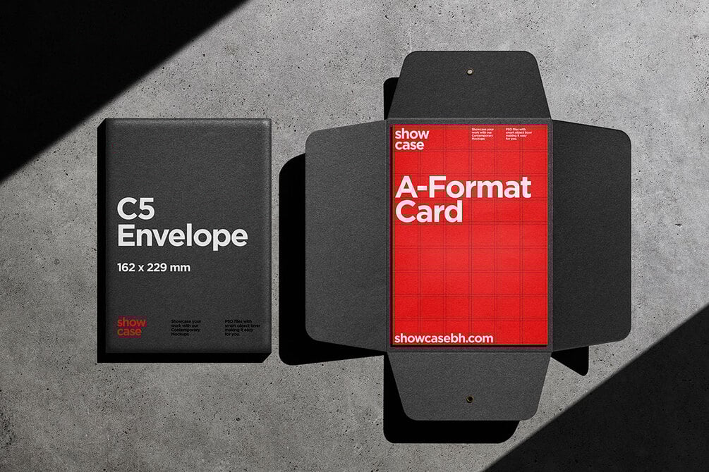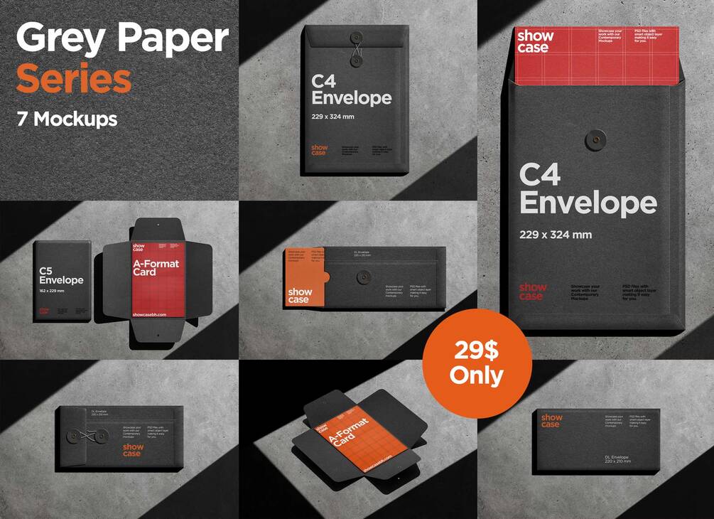 7 Mockups. DL envelope, C4 envelope, C5 envelope