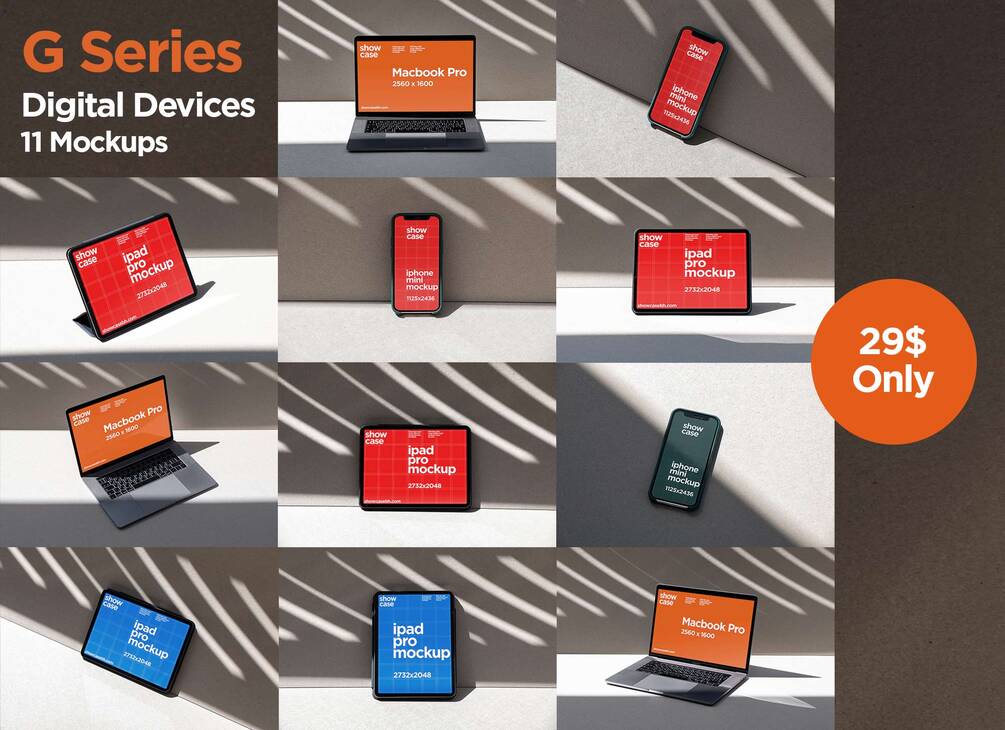 Showcase Mockups help designers to create a strong visual presence. PSD files with smart object layer, making it easy for you to make mockups in seconds.