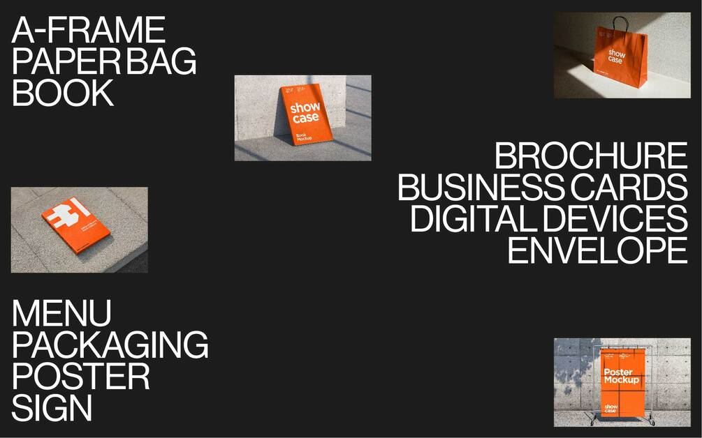 > Use our mockups for personal use > Use our mockups for professional and commercial work > Showcase your branding using our mockups in presentations and creative proposals > Create social media posts and website content using our mockups.